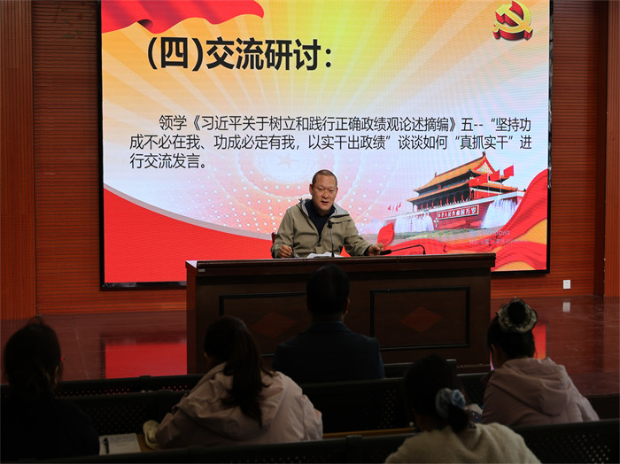 全体党员和青年教职工集中学习了《习近平关于树立和践行正确政绩观论述摘编》、习近平总书记关于树立和践行正确政绩观学习教育的最新重要讲话精神等内容,并传达学习中央层面树立和践行正确政绩观学习教育工作专班、中央纪委办公厅公开通报典型案例。交流研讨环节,党员和青年干部代表分别以“坚持功成不必在我、功成必定有我,以实干出政绩”从“真抓实干”进行交流发言。大家一致表示,要以“初心不改,为党育人”的忠诚担当,在“实”字上下功夫、建实绩,见实效。在工作中多出“实招”、多下“实功”凝聚起“以实干立身、以实绩创业”的思想共识。把学习成果转化为履职实效,推动党建工作与体育教学、人才培养同频共振,以高质量党建引领体育、教育事业高质量发展。