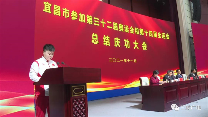 运动员代表汪周雨、教练员代表赵杰分别作交流发言△ 宜昌市参加第三十二届奥运会 和第十四届全运会 获得金牌运动员情况简介 汪周雨