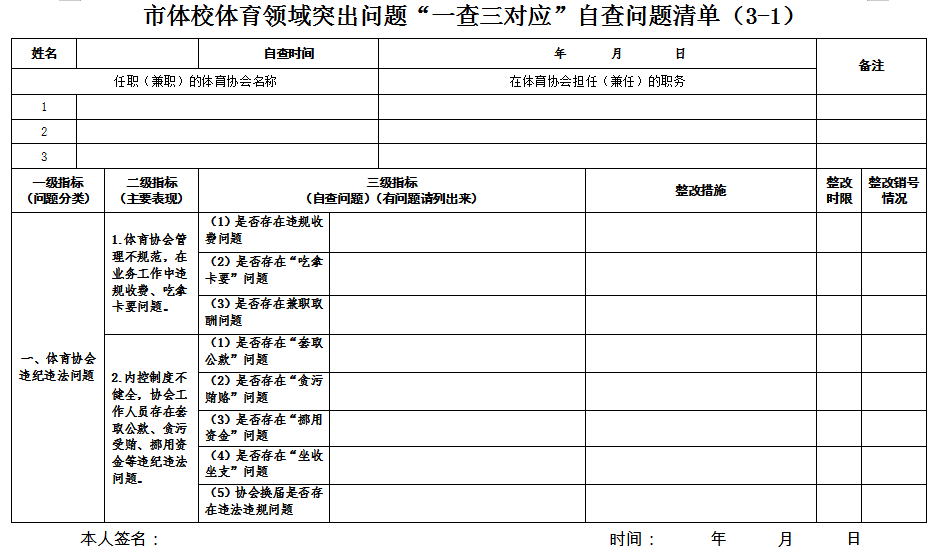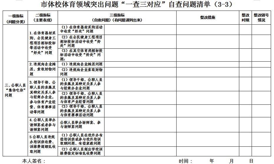 附件:市体校体育领域突出问题“一查三对应”自查问题清单