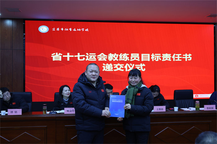 随后举行的责任书递交仪式将会议推向高潮。网球、游泳、篮球、举重等15个项目的28位教练员签订《省十七运会目标责任书》,明确了各项目的金牌目标、奖牌任务、人才培养指标,更细化了训练保障、赛风赛纪、反兴奋剂等全链条责任要求。