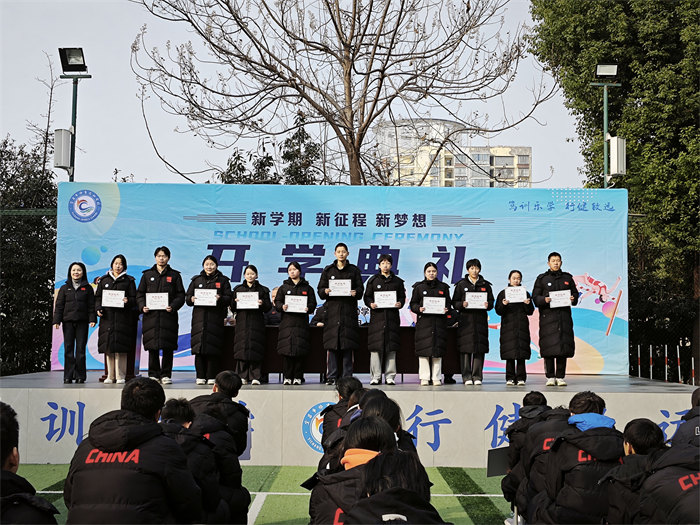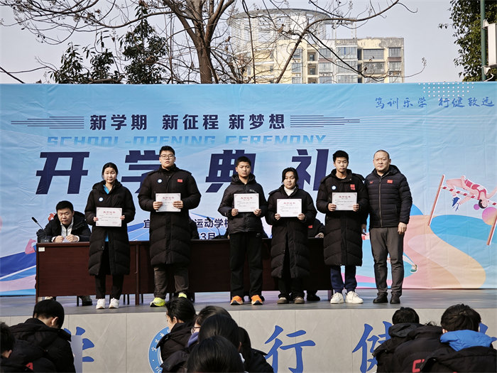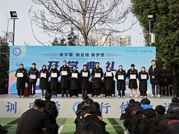 升旗仪式后,校党支部副书记姚金玲宣读表彰文件,随后对上学年学习、训练、工作突出者进行了表彰,鼓励全体师生向先进学习。