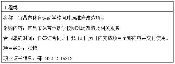 | 宜昌市体育运动学校网球场维修改造项成交结果公告 |