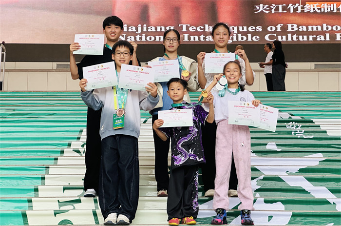 赛场上,宜昌小将们的表现堪称“惊艳”:年仅8岁的谭礼渊,进入宜昌体校武术套路队训练仅一年便初次征战国际赛事,凭借稳定发挥一举夺魁,展现出惊人的武术天赋;老将范建中自24年入我校高中部以来就一直刻苦训练坚持不懈,努力追求更高技术水平,本次比赛则以行云流水、连绵不绝的动作,将武术的刚柔之美展现得淋漓尽致,成功征服裁判与观众;初中生张梓琪在学业与训练的双重压力下稳步成长,她从小学阶段10岁开始就在市体校跟随武术套路教练员龚玺训练,此次更是顶住大赛压力,一举斩获太极拳、太极剑双项冠军,成为赛场上耀眼的“双冠王”。